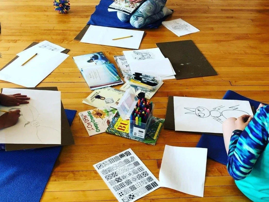 Hronkin also teaches a yoga/art class at Fresh Coast Yoga in Houghton, co-owned by Mary Jennings, Brigitte Morin and Drew Cramer. She started working there last summer, doing adult yoga classes, and later launched the children’s classes. She has just completed a 95-hour Children’s Yoga Certification from Soulwork Studios in Canada, which included a practicum. Her practicum was on mindful art and movement, and Hronkin prepared a video of that which will be part of the training curriculum.